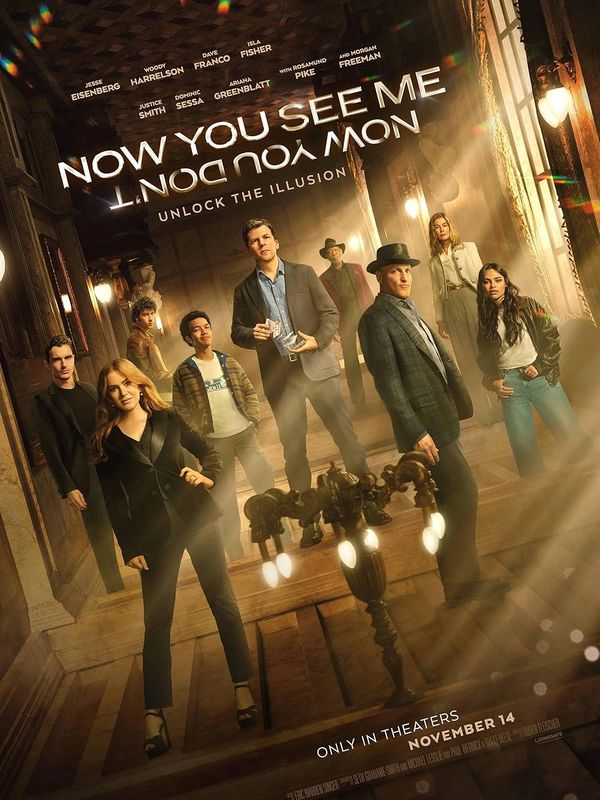 Cast: Jesse Eisenberg, Woody Harrelson, Dave Franco, Isla Fisher, Morgan Freeman, Rosamund Pike, Justice Smith, Dominic Sessa, Ariana Greenblatt
